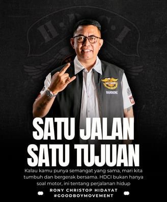 Saya bergabung dengan HDCI karena Harley adalah bagian dari hidup saya, bukan sekadar hobi. Siapa pun bisa beli motor, tapi tidak semua punya jiwa jalanan seperti kita. #GoodboyMovement lahir dari semangat “Satu Jalan, Satu Tujuan” gerakan kolaboratif yang menumbuhkan kepemimpinan, rasa hormat dan kebersamaan. Bagi saya, HDCI adalah rumah, tempat kita tumbuh dan berdampak bersama.